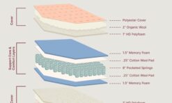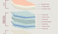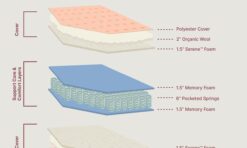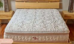 Experience the perfect blend of comfort, durability, and sustainability with the Flip Premier Mattress, the newest addition to our collection. Its hybrid innerspring construction combines premium materials, with high-quality memory foam layers surrounding responsive pocketed springs to provide exceptional pressure relief and support. This flippable mattress showcases a beautifully quilted, lotus-inspired leaf pattern on both the firm and plush models. A certified organic wool layer is quilted into the cover, acting as a natural fire barrier while improving breathability for a cooler, more restful sleep.